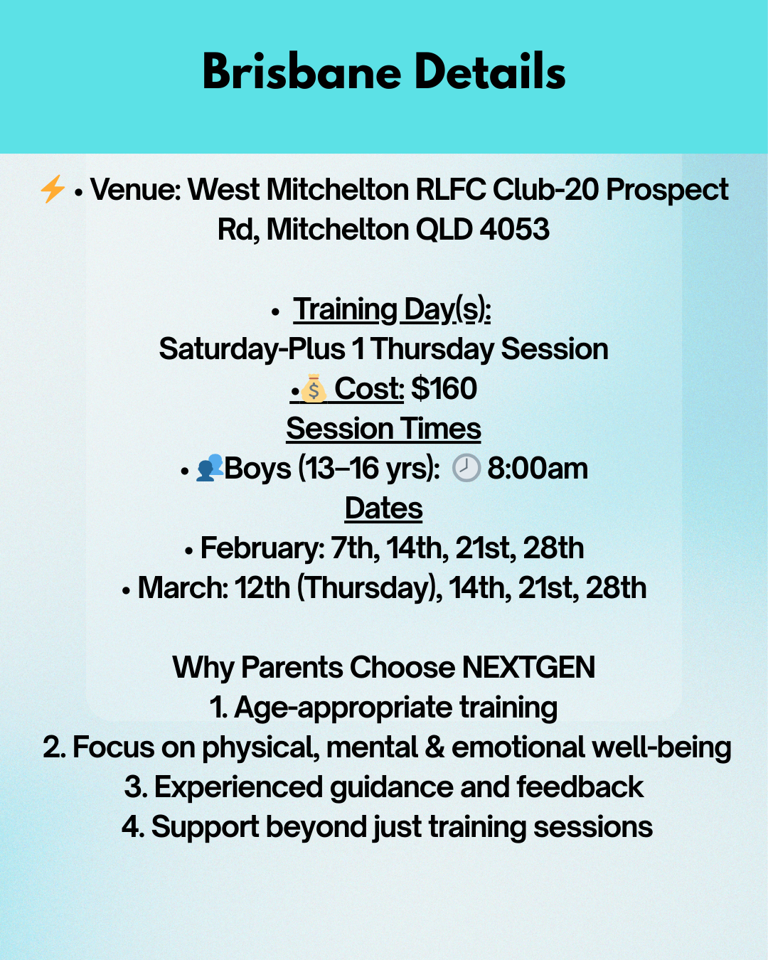 - NRL Youth Player Scouts attendance at sessions